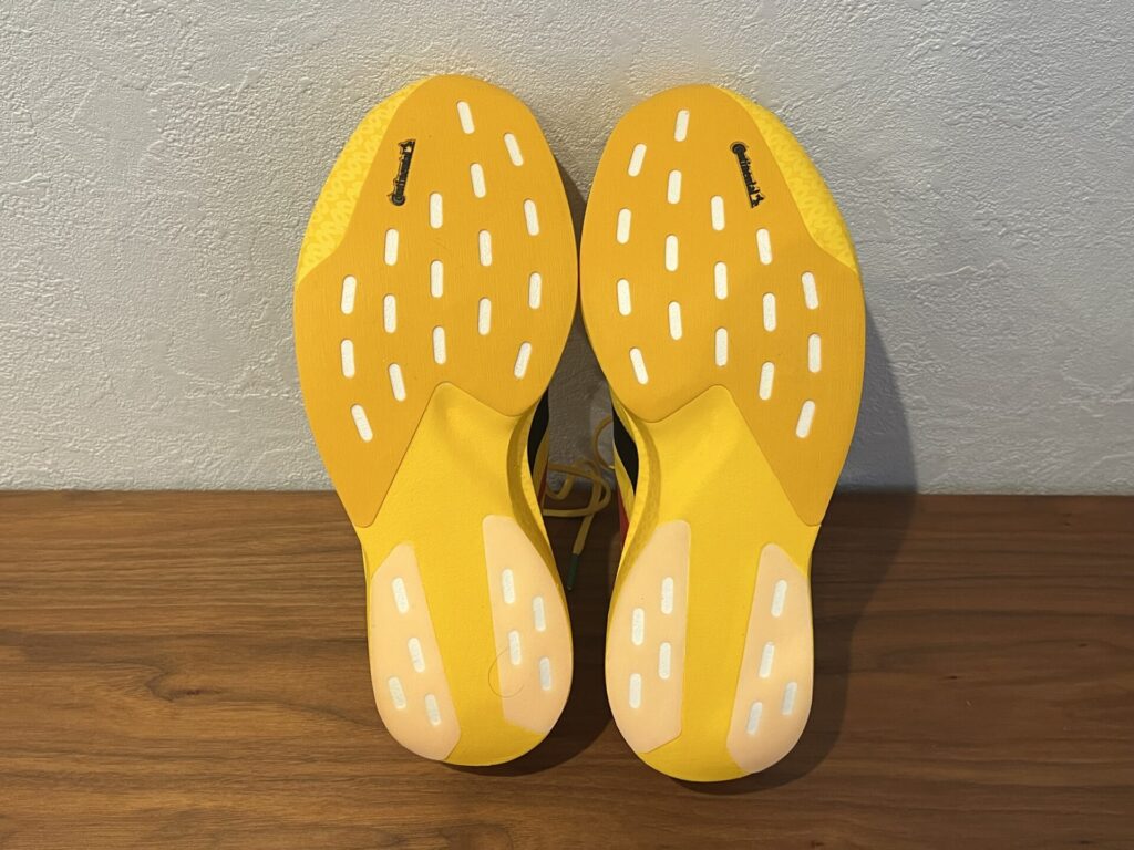 前作同様に反発性能は申し分なし。少し硬くなったことにより、クッション性は落ちたものの、安定感という面では接地時のグラつきがなくなり向上した感じです。