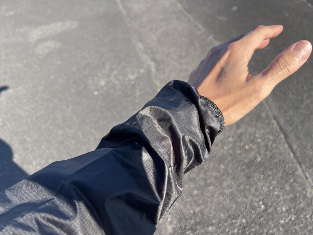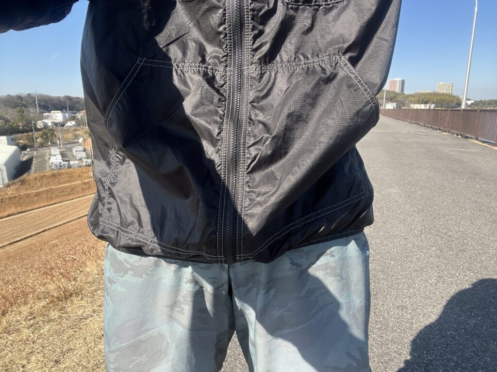思いのほか防風性能が良く、ベンチレーションとなる通気口がないため、真冬でもインナーを間違えると中が湿るくらい熱気がこもることもあるので、ランニングで使用するなら、ゆっくりなジョグなどの強度の軽いときに着用するのがおすすめ。