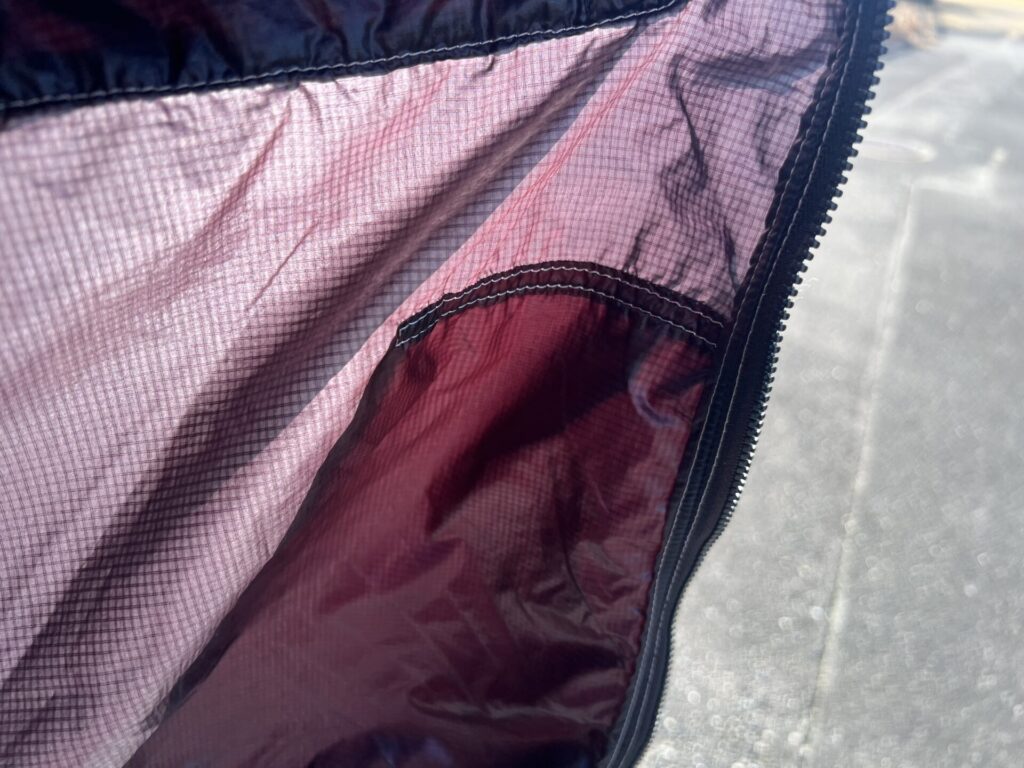 スワローテイルベントフーディも非常に軽量な部類ですが、フリーランウィンドパーカは、生地がさらに薄く、全体的にかなりの軽量化が図られています。