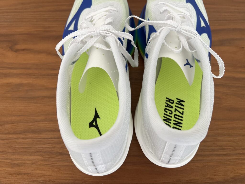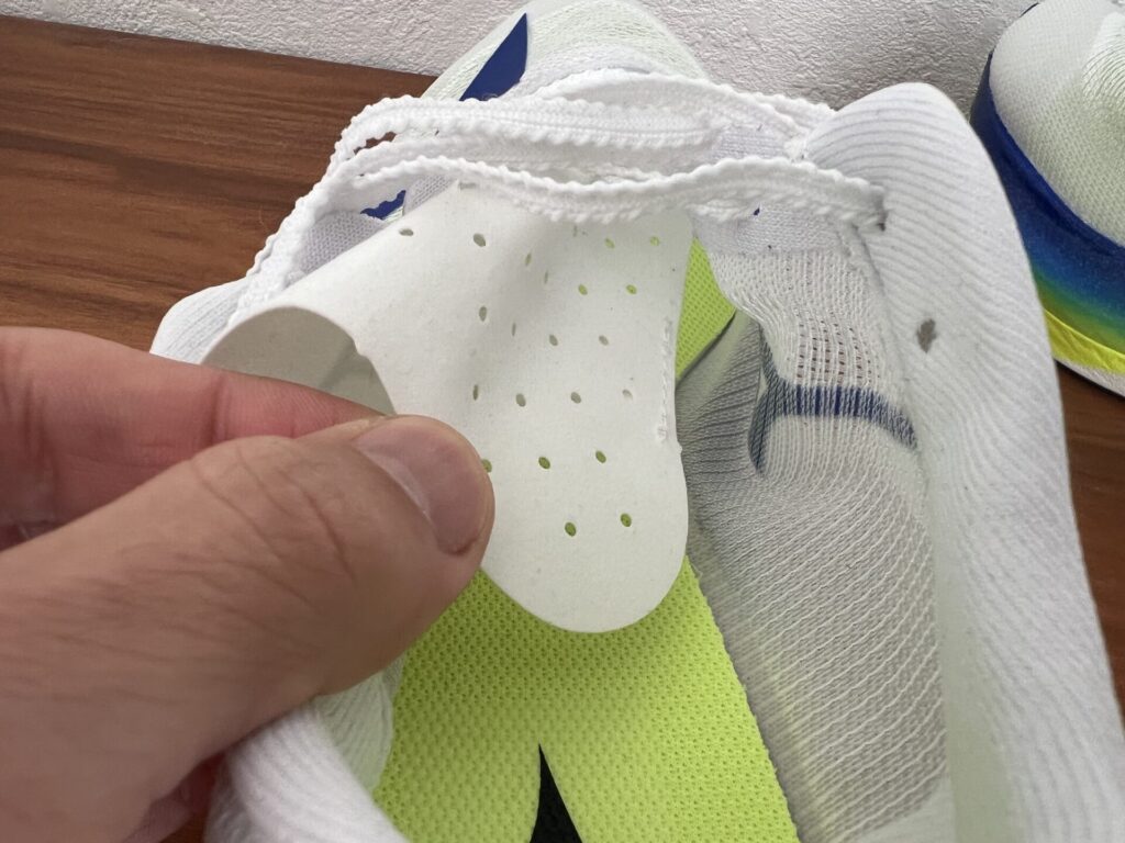 若干ですが、アキレス腱にあたる部分が、他のシューズよりも丸くなっていて、履き口も結構大きく緩めになっています。