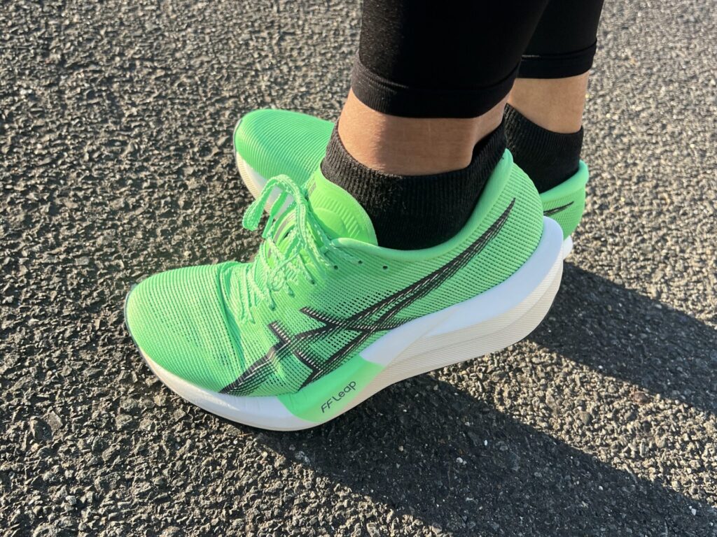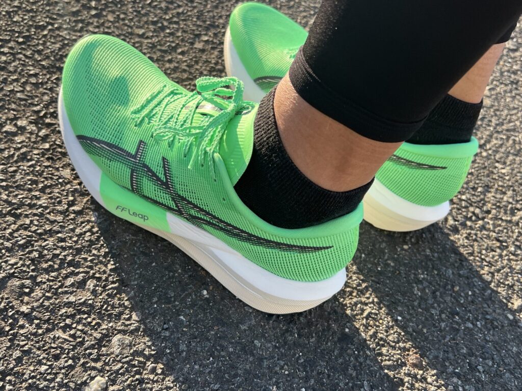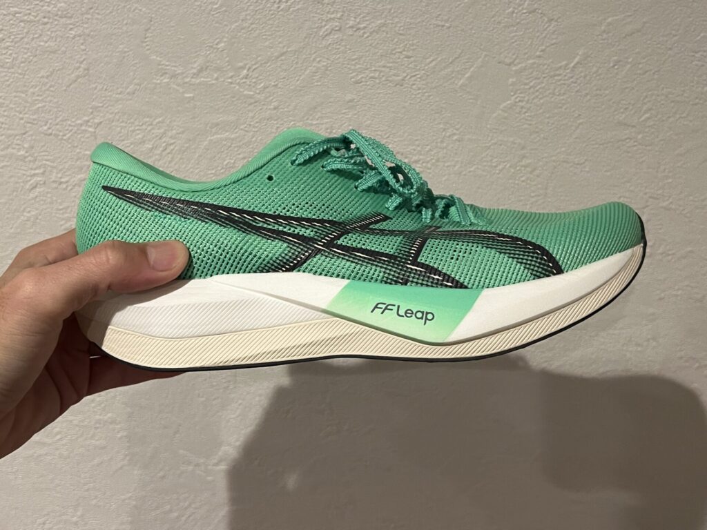 最上位モデルにも使用される「FF Leap」がとてもやわらかい接地感で、硬い印象だったマジックスピード4とは大きく変わりました。ただ、FF Leapの厚みはそこまでなく、下層にFF BLAST PLUSがあるため、メタスピードTOKYOと比較してはいけません。