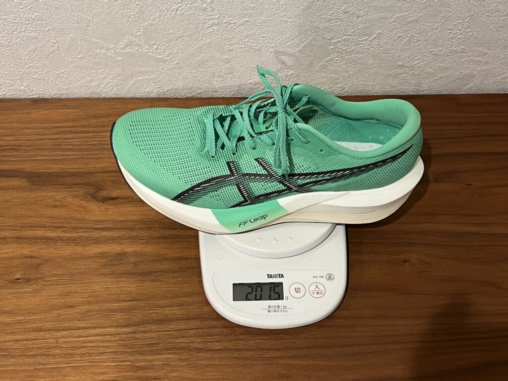 ミッドソールにより軽量な「FF Leap」を使用し、厚みも37.5㎜に抑えることによって驚異の軽量化!