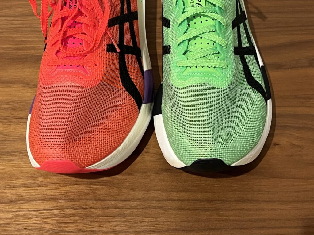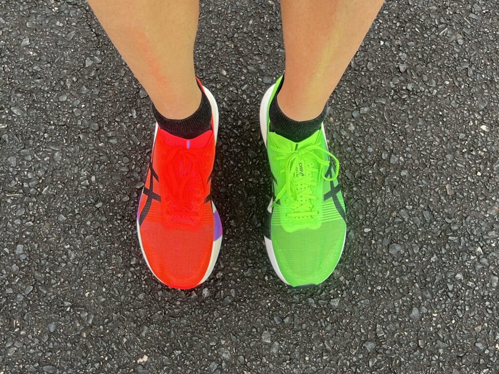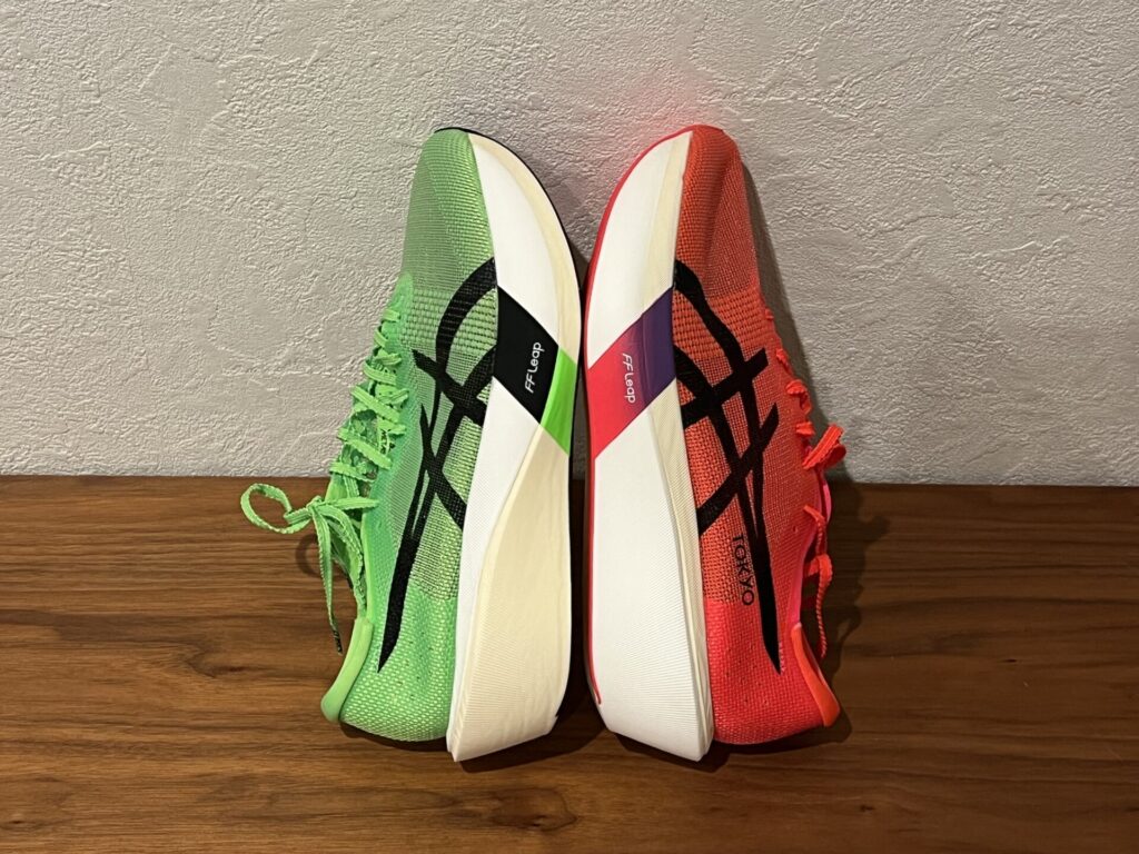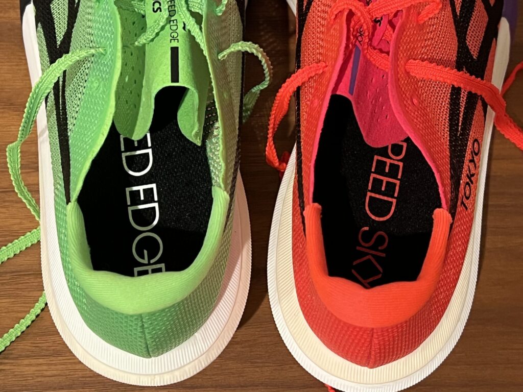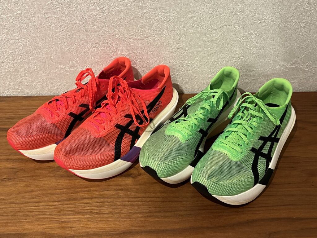 今回はレビューで使用するシューズは、赤が「メタスピードスカイTOKYO」、緑が「メタスピードエッジTOKYO」に色分けしてあります!