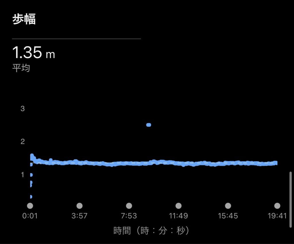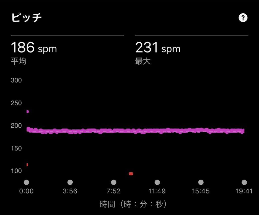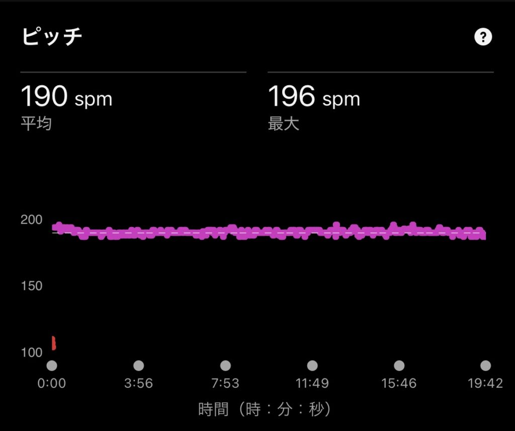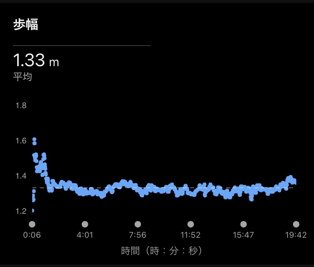 エッジはタイムを合わせるためにピッチを上げ下げることがあったため、歩幅も変動していしまった感じになりました。