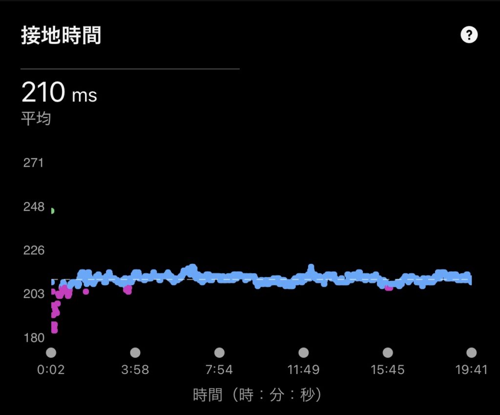 エッジTOKYOは、タメが少なくて反発が弱い分、ピッチを上げていかないと同じタイムでは走れない感じがあり、平均してエッジの方がピッチが出ています。